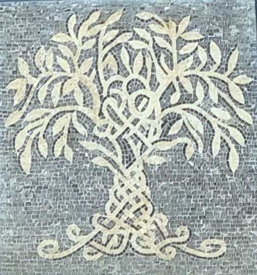 Behind the house there is a decorative parterre garden with hedges of useful rosemary, not box. Maintenance is facilitated by decorative mosaic steps into the parterres. In the garden, there are 3 large decorative wall mosaics and 7 step mosaics, all imported from Lebanon.