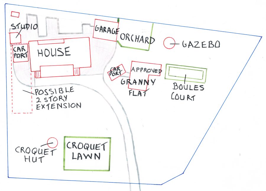 When the 2nd residence is built, there still will be ample vacant space on the property to extend the current house by adding a new two-story wing, looking out towards the croquet lawn and the lovely front garden. The lower-floor could contain an indoor heated pool with and outdoor verandah and the upper-floor a new master suite and other rooms.